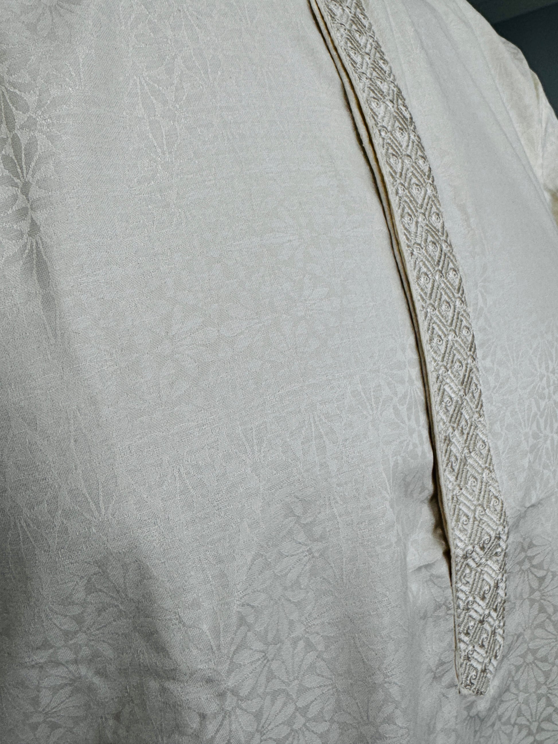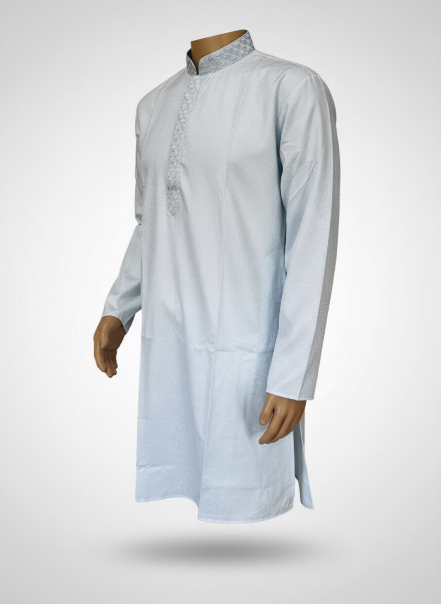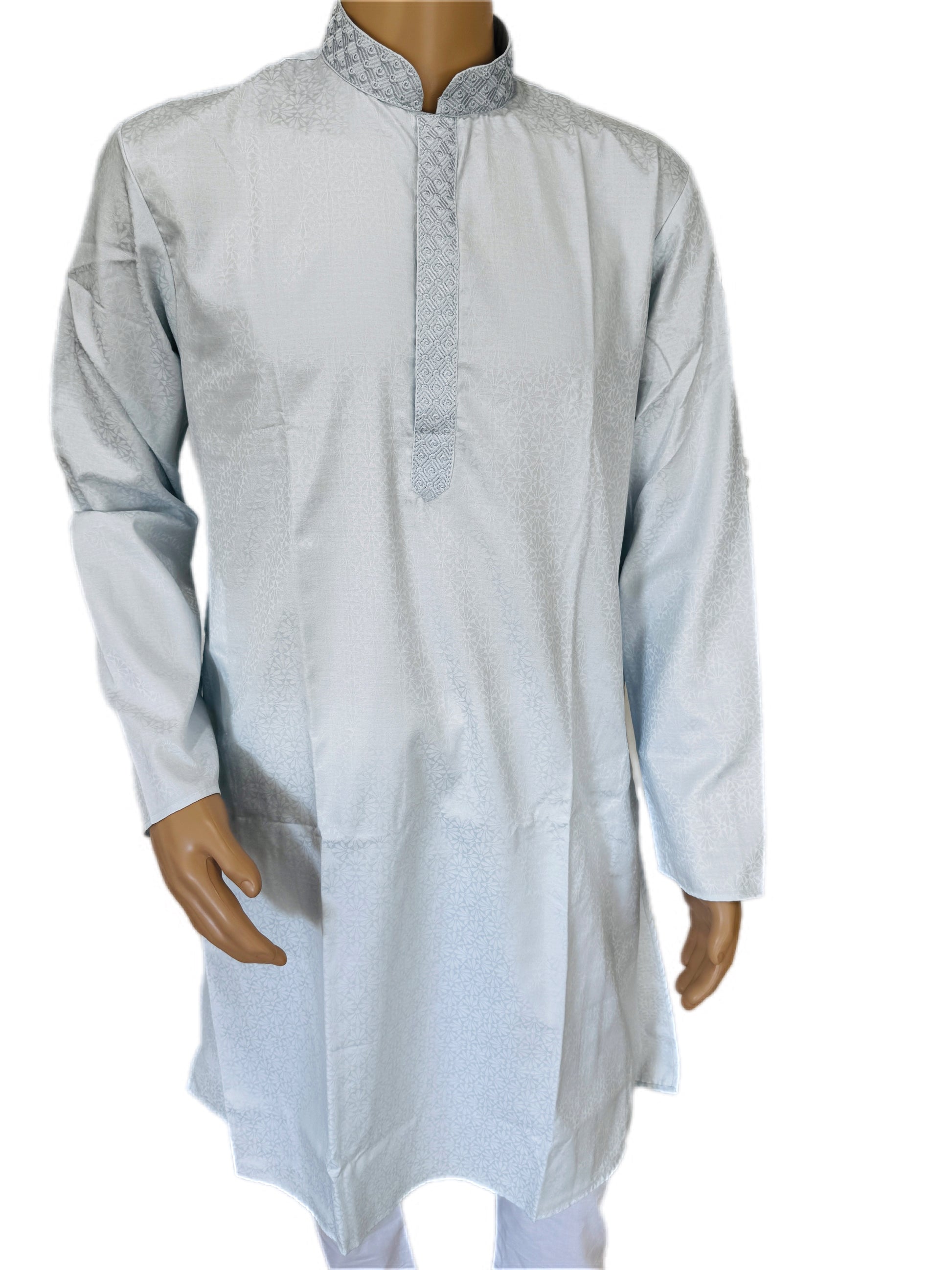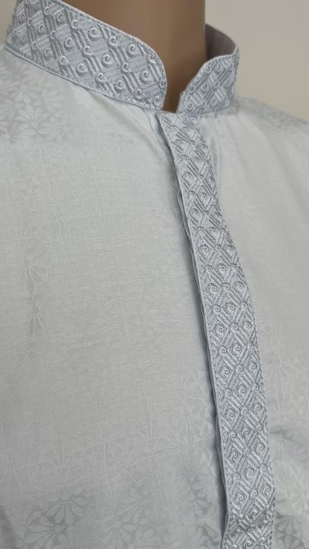 - The Kurta: Premium 100% Breathable Cotton. Features a refined "Resham" thread embroidery on the Mandarin collar and chest placket. The fabric is soft, lightweight, and engineered for all-day freshness.